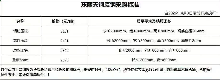 *日东丽天钢废钢最新价