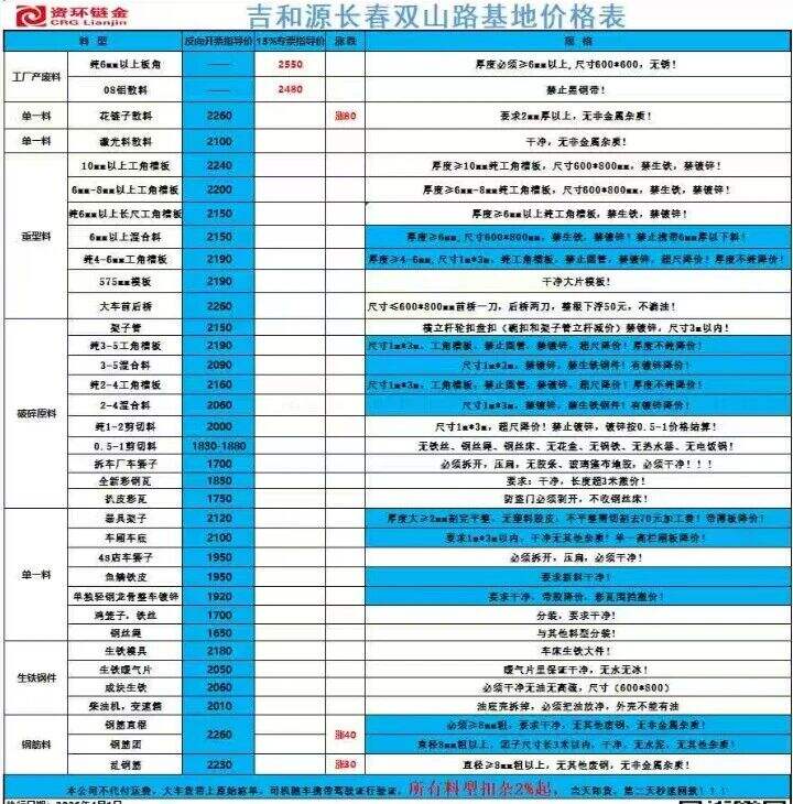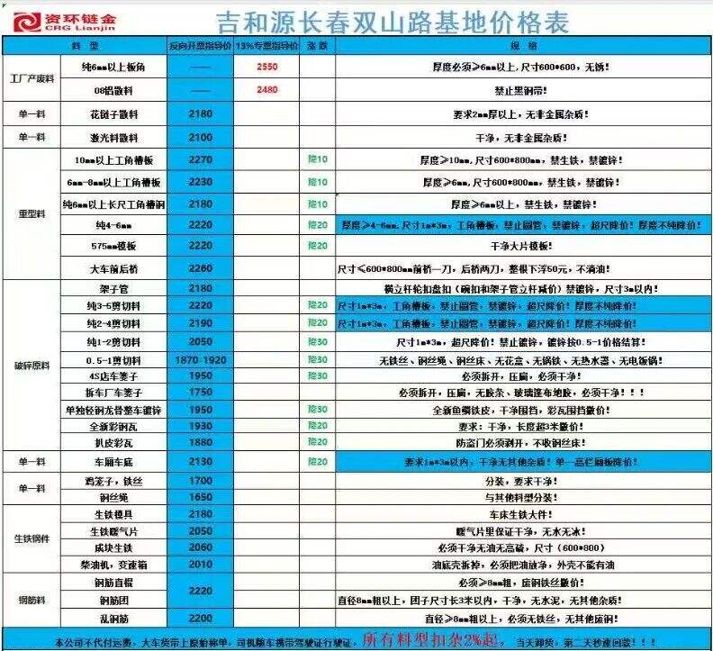 ****年*月**日资环链金吉和源公司.长春双山路废钢基地报价