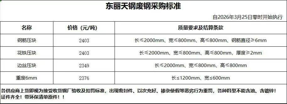 **日东丽天钢废钢最新价
