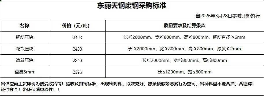 天津大无缝通知,本期废钢价格上调**元/吨。具体以厂家价格表为准。