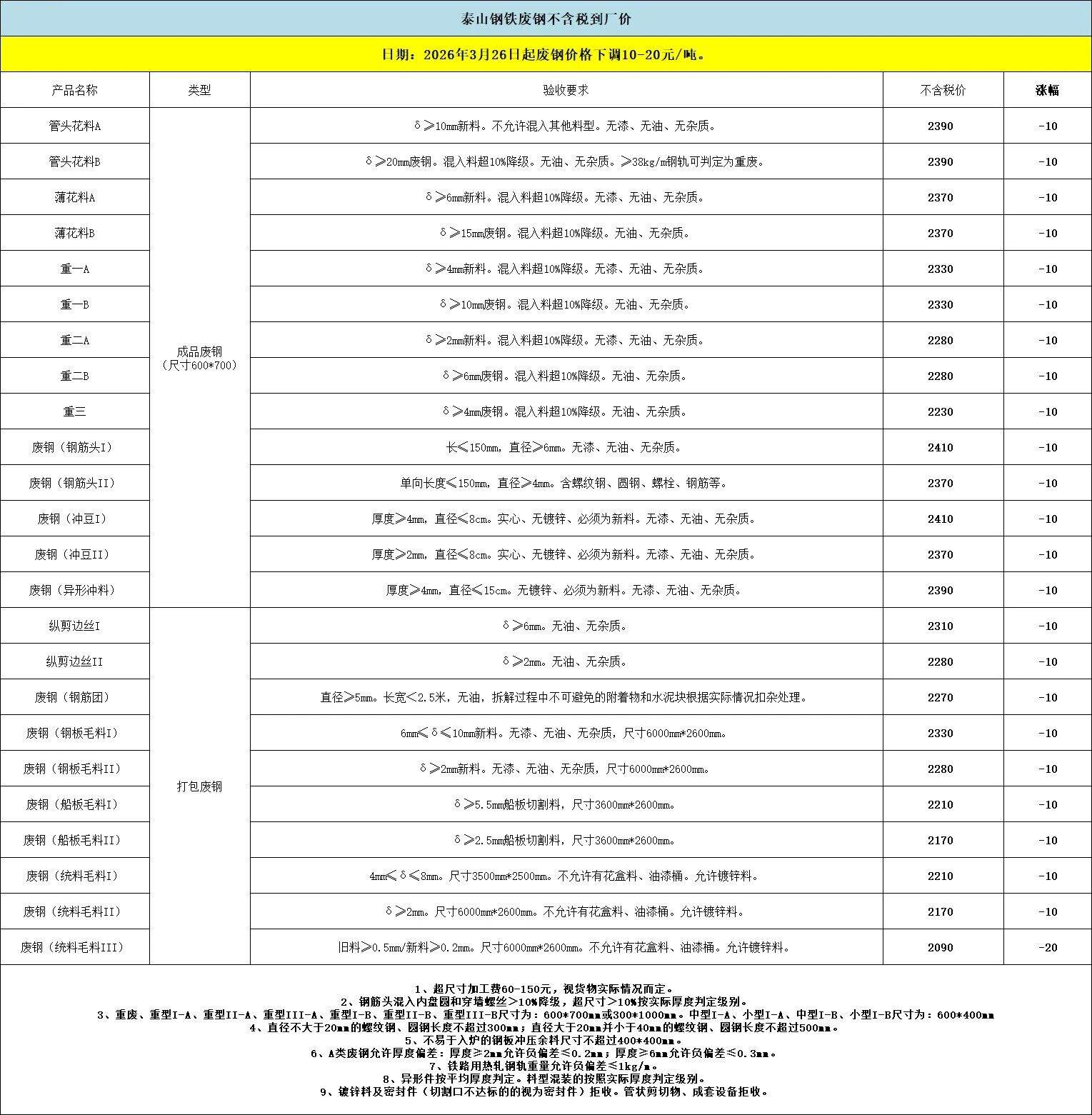 *月**日起山东泰山钢铁废钢价格下调**-**