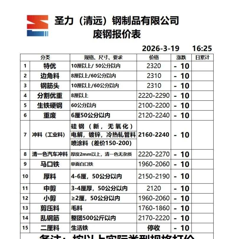 **日粤东废钢价格跌**: