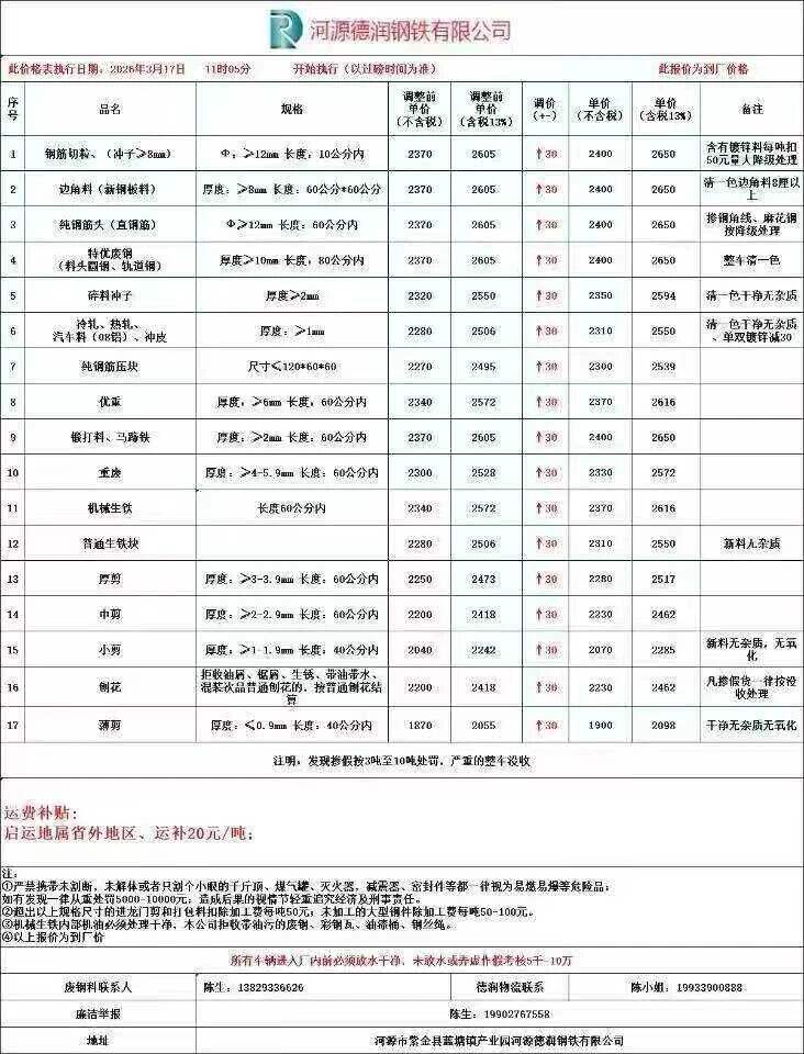 **日江门宝丰废钢涨**: