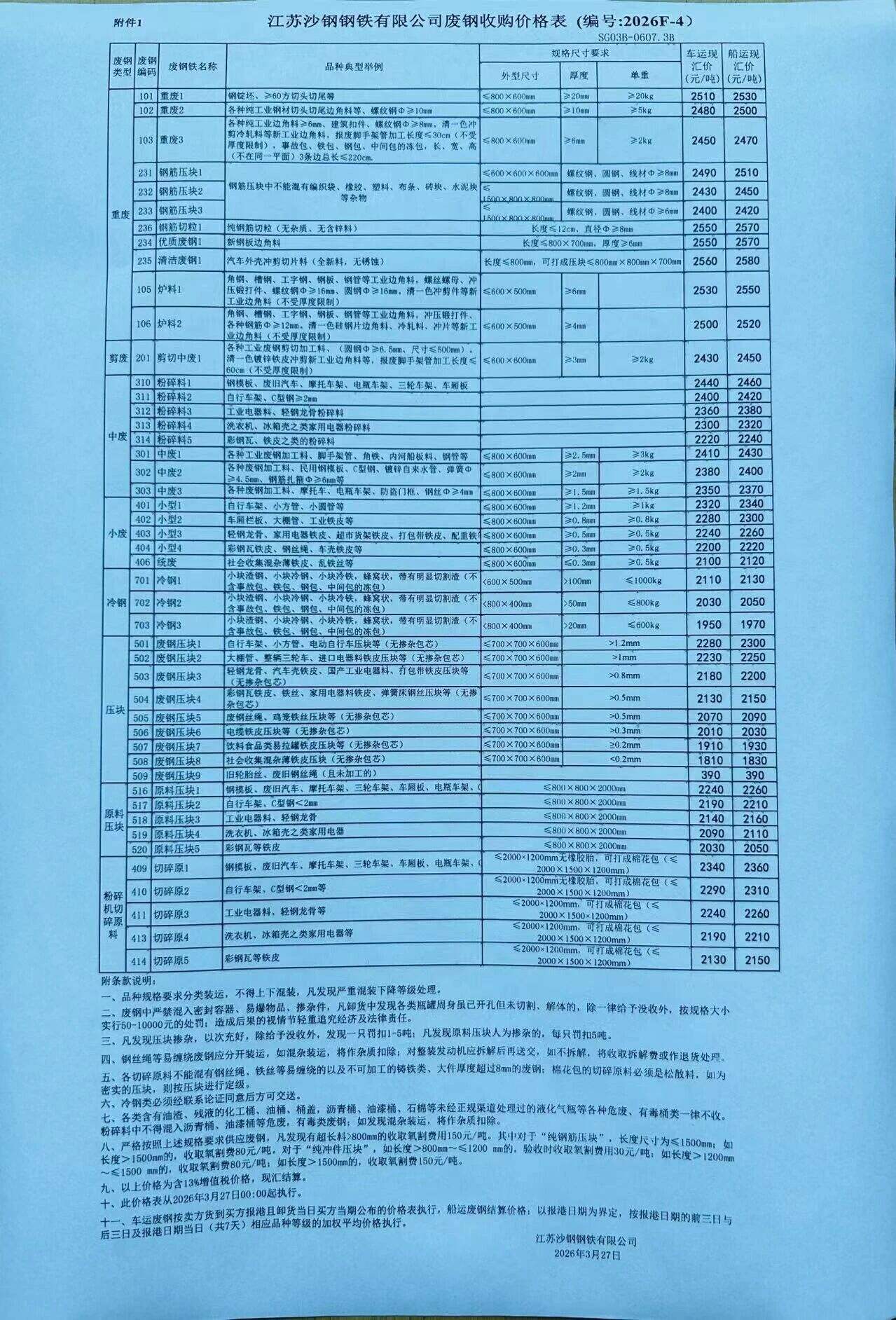 各废钢供货单位:沙钢自****年*月**日起废钢下调**-**元/吨,具体废钢价格以****-F*价格为准。