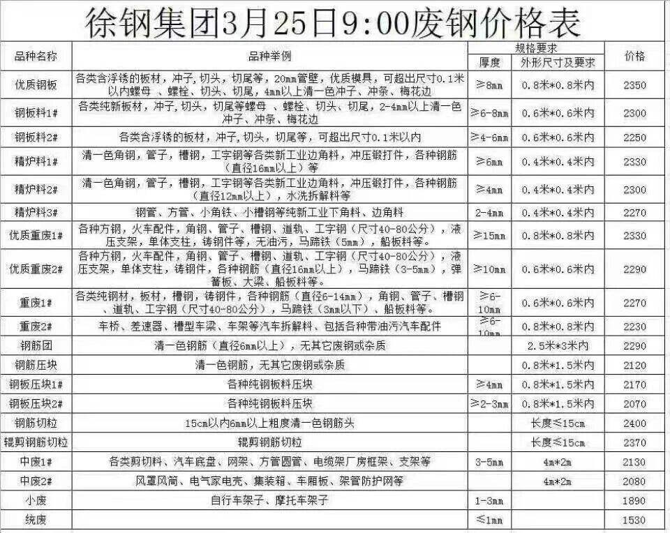 徐钢集团*月**日*:**开始废钢调整价格,调整后: