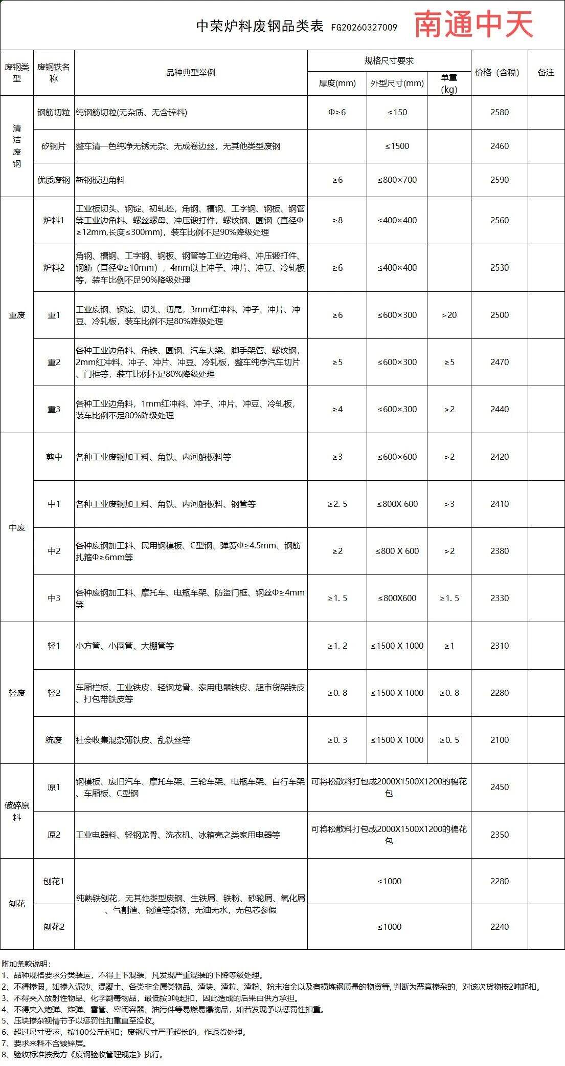 南通中天废钢收购价从****年*月**日起,所有品类统一下调**元/吨。 送货联系:黄*********** ***********