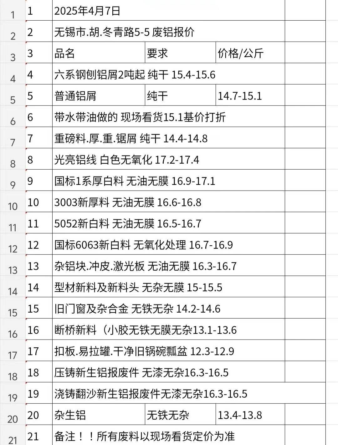 ****年*月*日无锡胡埭冬青路*-*号废铝报价