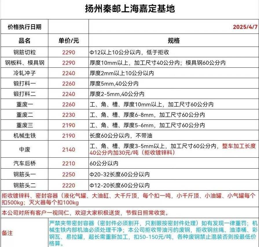 ****年*月*日扬州泰邮上海嘉定基地废钢报价