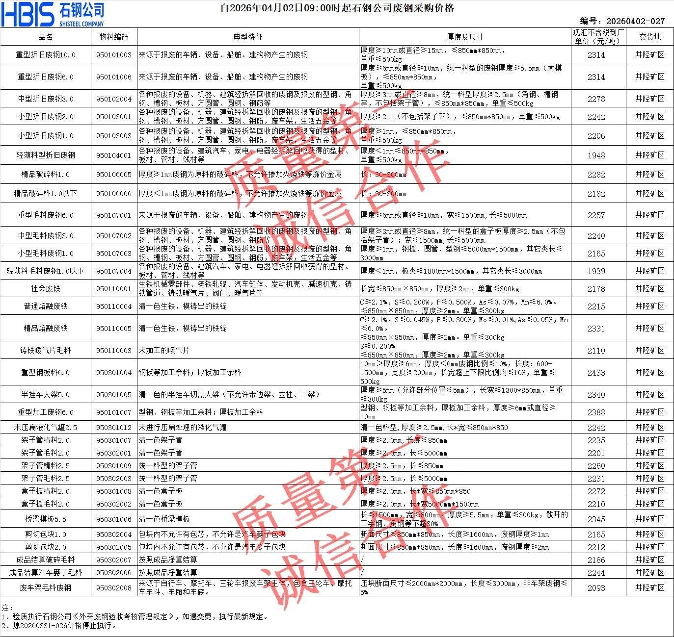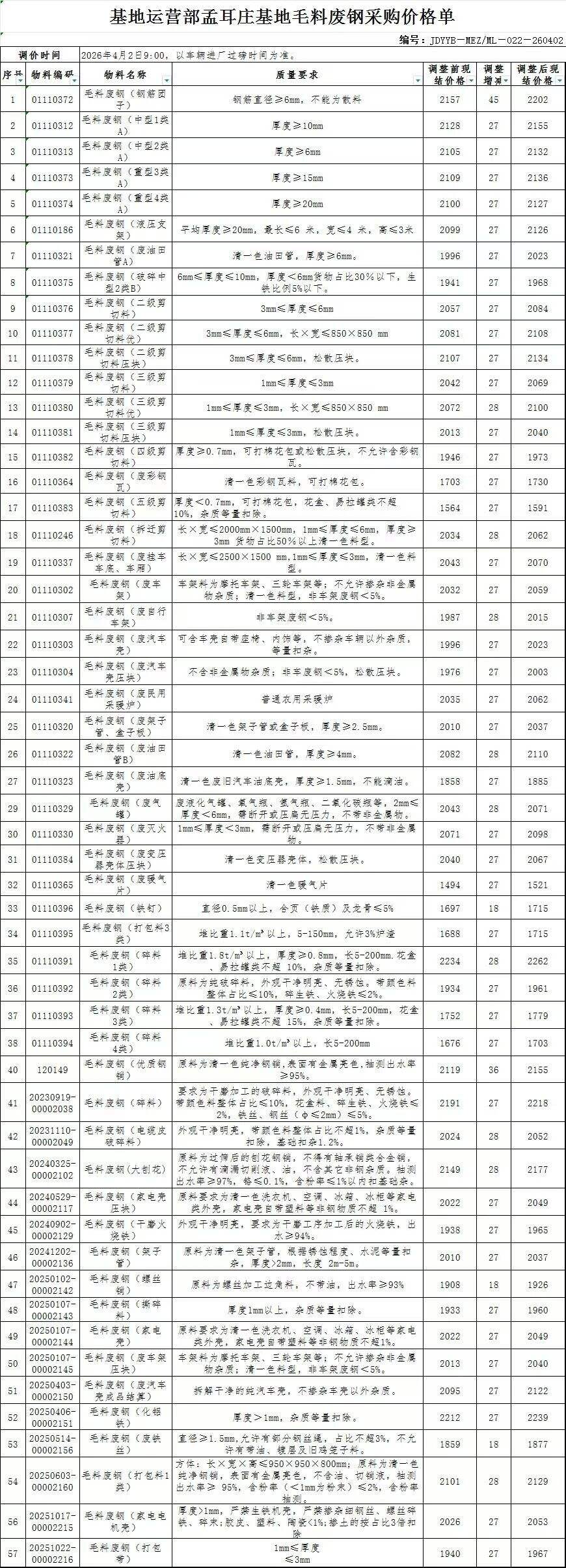 *日石家庄敬业毛料最新价:钢筋团子****,中型*类A:****,中型*类A:****,重型*类A:****,重型*类A:****,二级剪切料****,不含税。