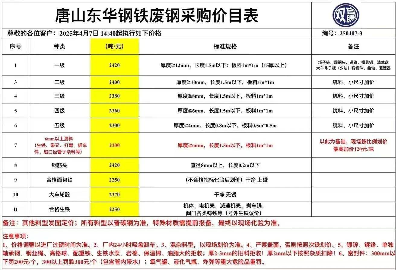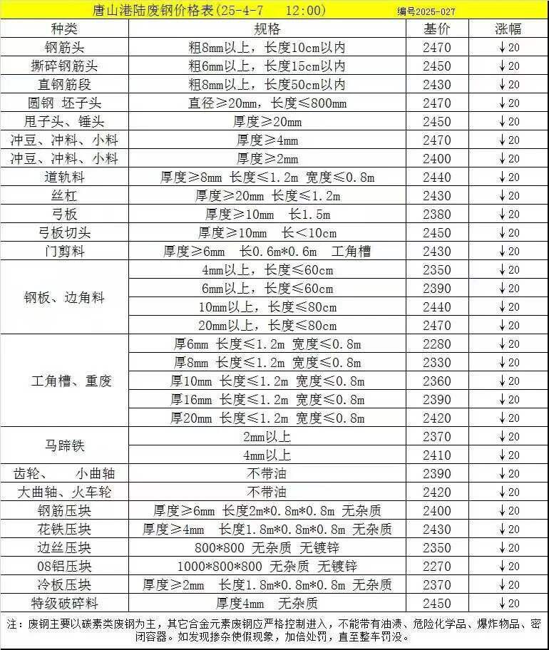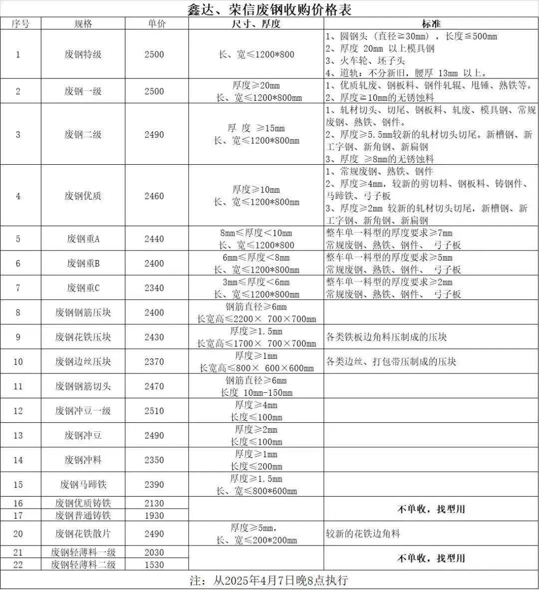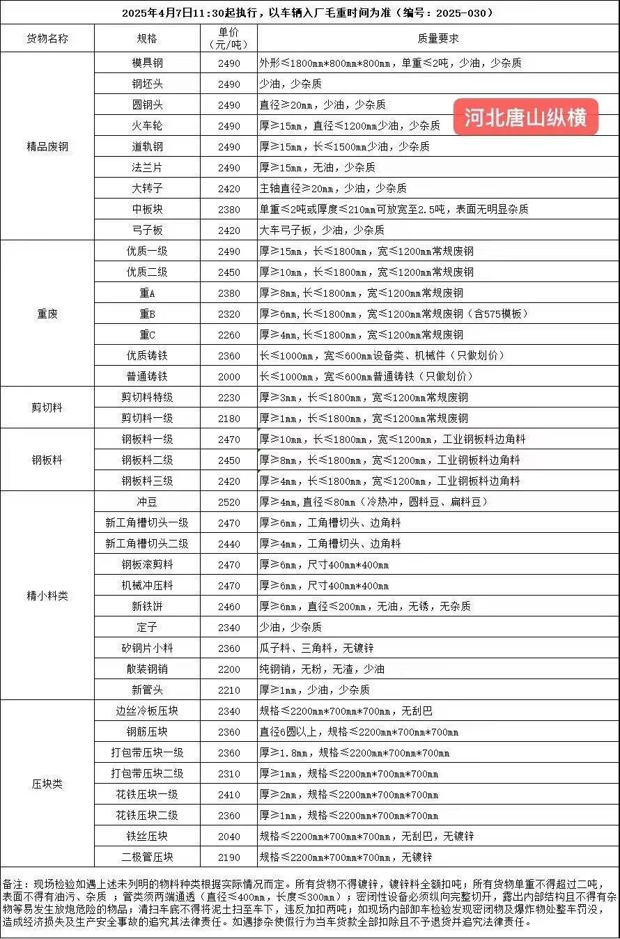 敬业通知,*月*日**点起本部废钢价格调整,具体详见价格表