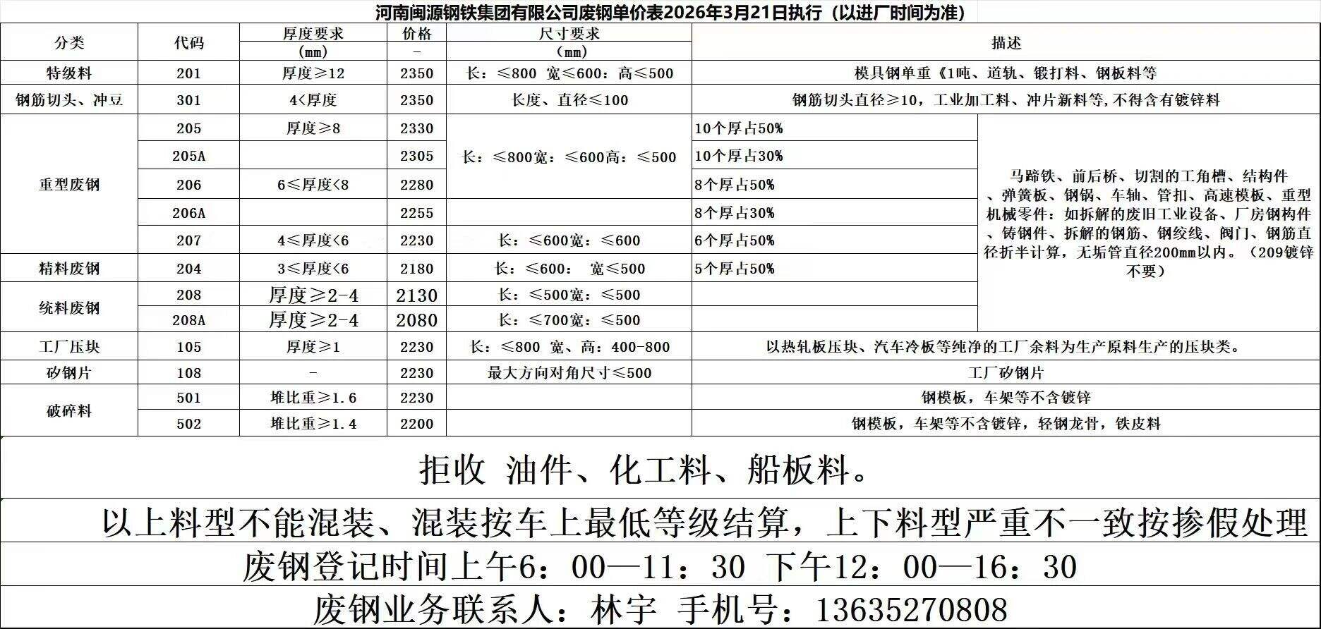 河南安阳永兴特钢通知,**日起破碎料价格下调**元/吨,其它不变。
