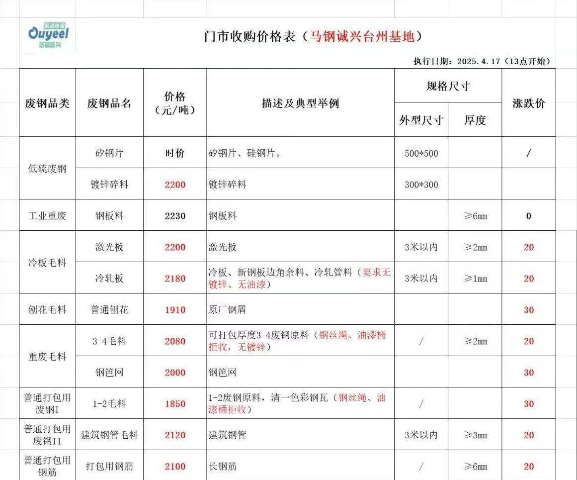 马钢诚兴台州基地*月**日**时新增品种镀锌碎料,其他品种上调**-**元/吨,请各位供应商知悉。