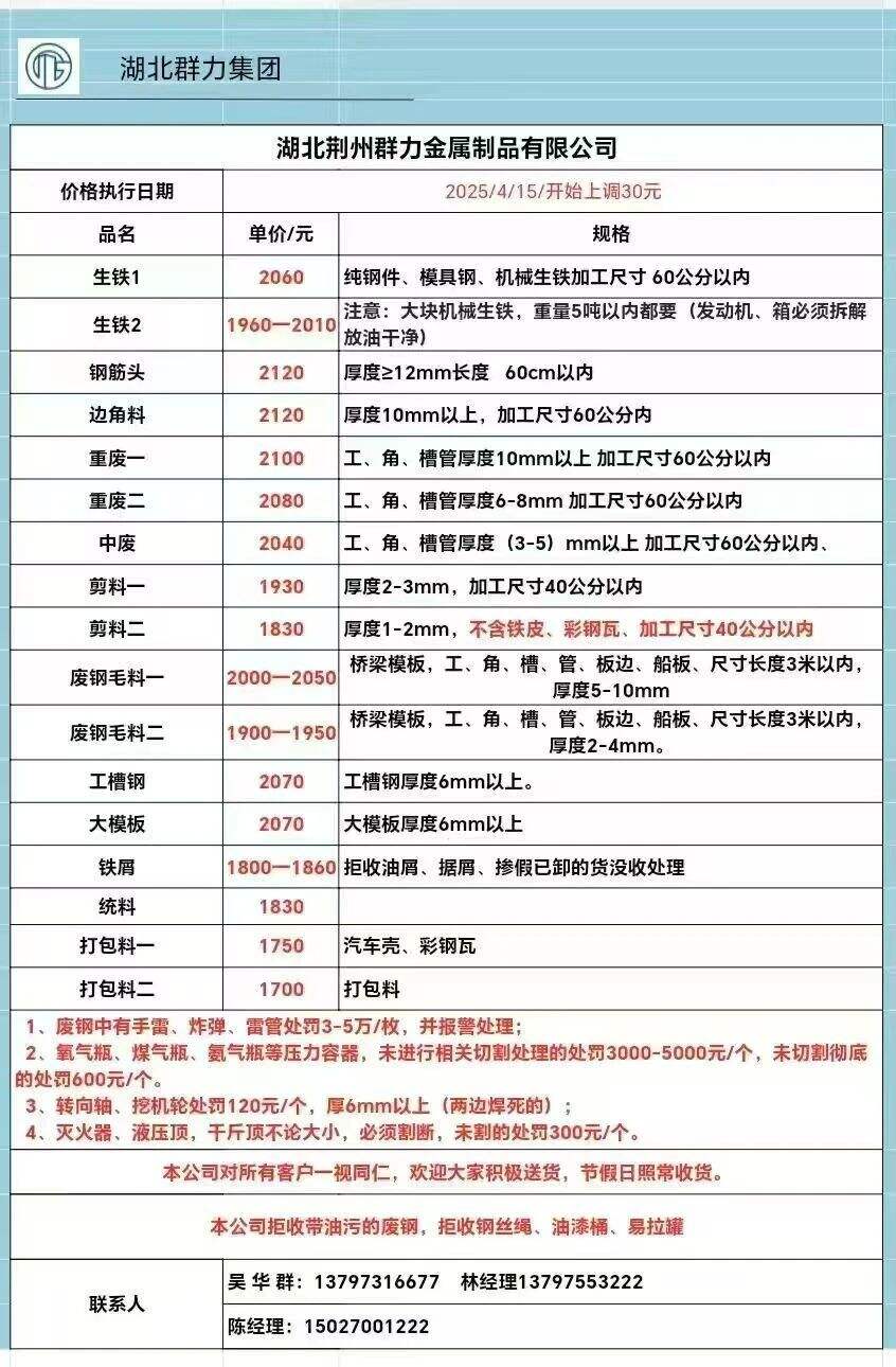 通知,荆州群力下调**,**日荆州群力跌**,生铁*:****,生铁*:****一****,钢筋头****,边角料****,重废一****,重废二****,中废****,剪料一****,剪料二****,废钢毛料一****一****废钢毛料二****一****,工槽钢****