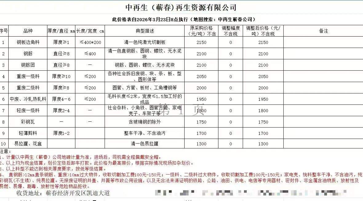 ****年*月**日湖北中再生(蕲春)再生资源有限公司报价