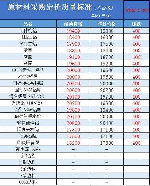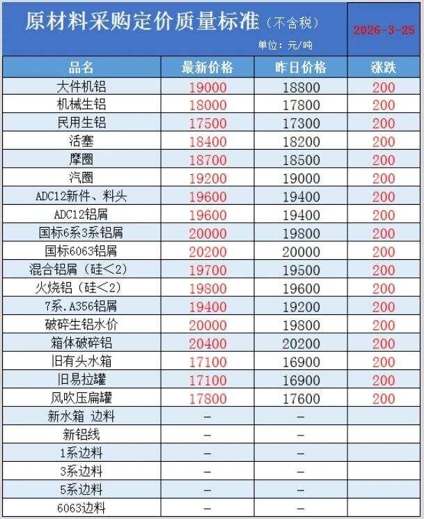 ****年*月**日顺博铝合金湖北有限公司最新价格