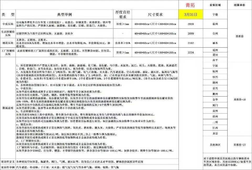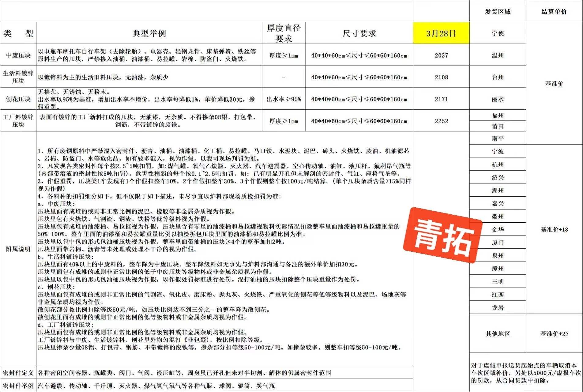 青拓通知:****年*月**日所有料型跌**,具体以价目表为准。