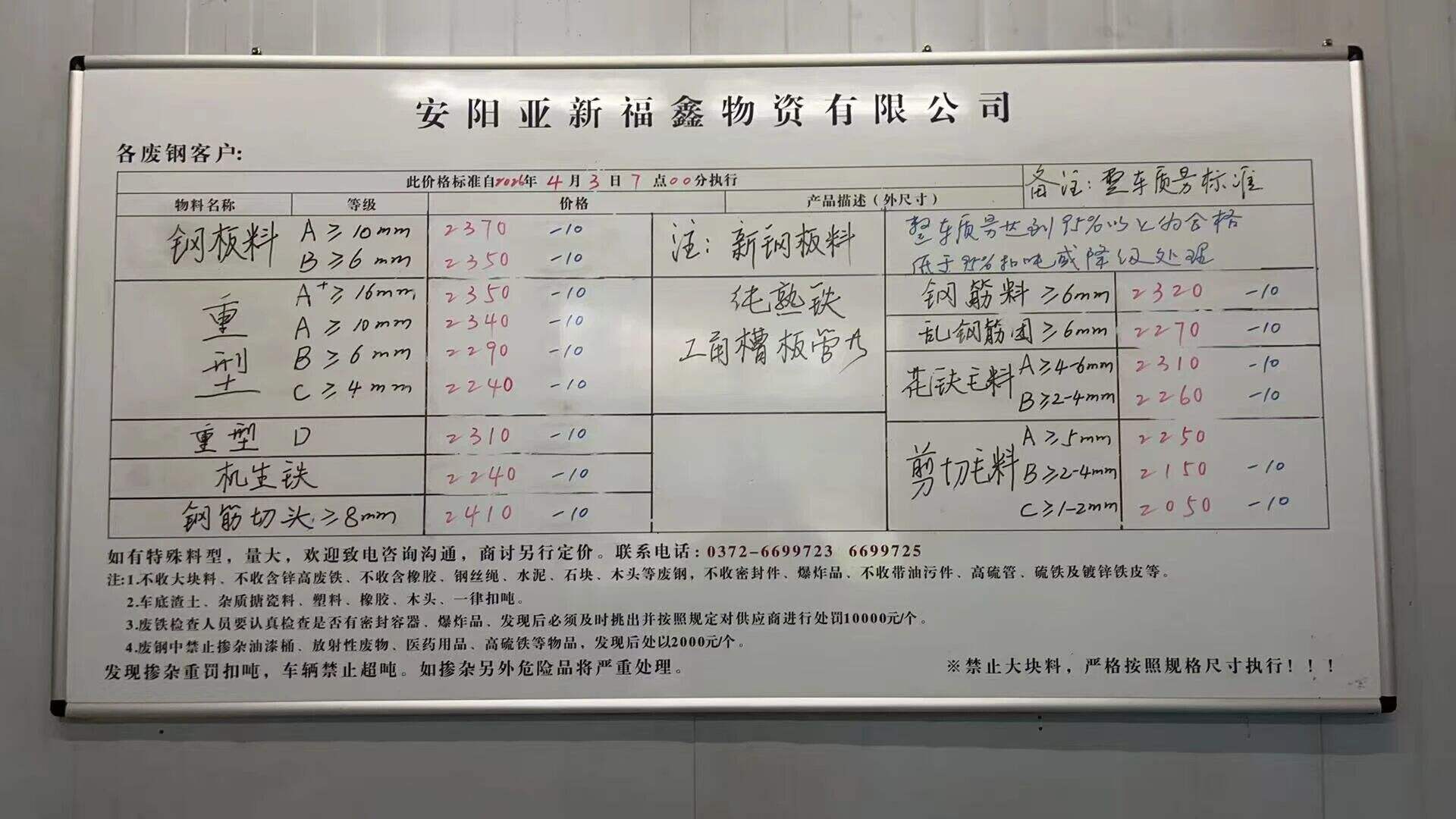 *月*日河南安阳亚新废钢所有料型采购价下调**